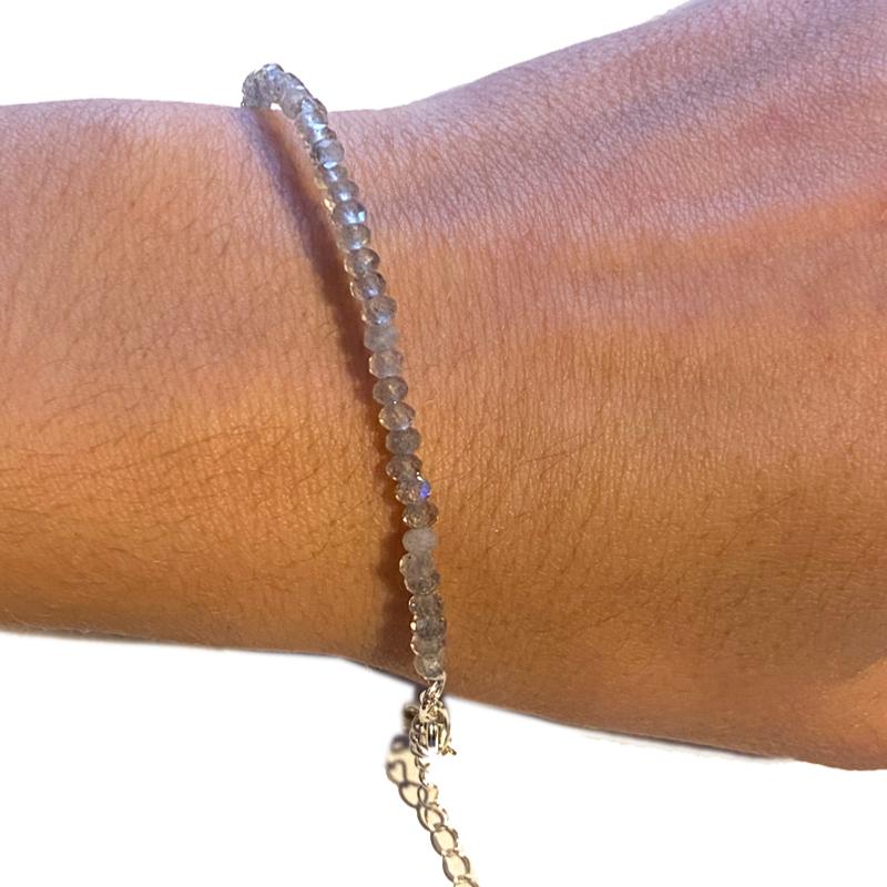 Beautiful bracelet made of 3-4mm faceted labradorite beads.