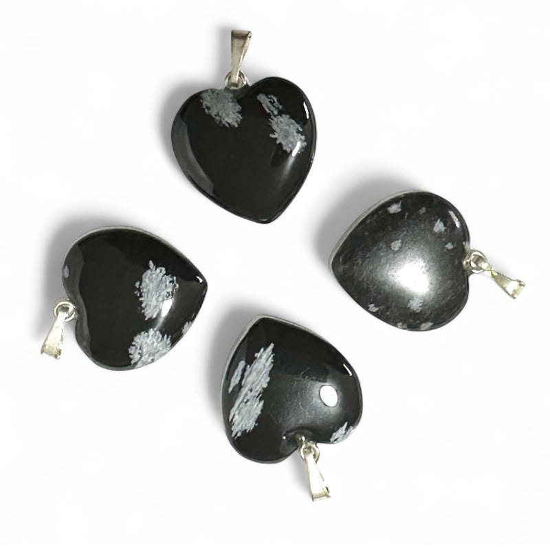 Small 20mm snow obsidian heart with a stainless steel bail.