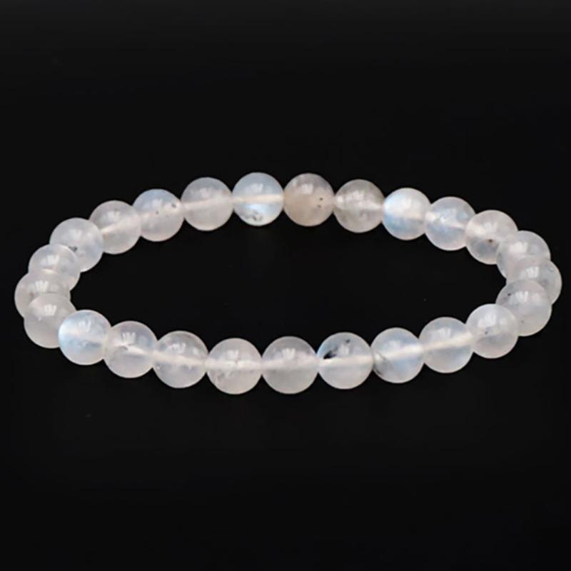 Pulsera elástica elaborada con bolas de piedra lunar arcoiris de aproximadamente 5-6mm.