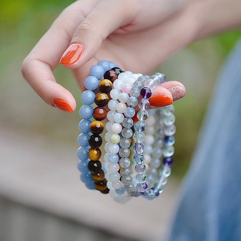 Certains bracelets sont réglables, facettés, multicolores, multi-pierres.
