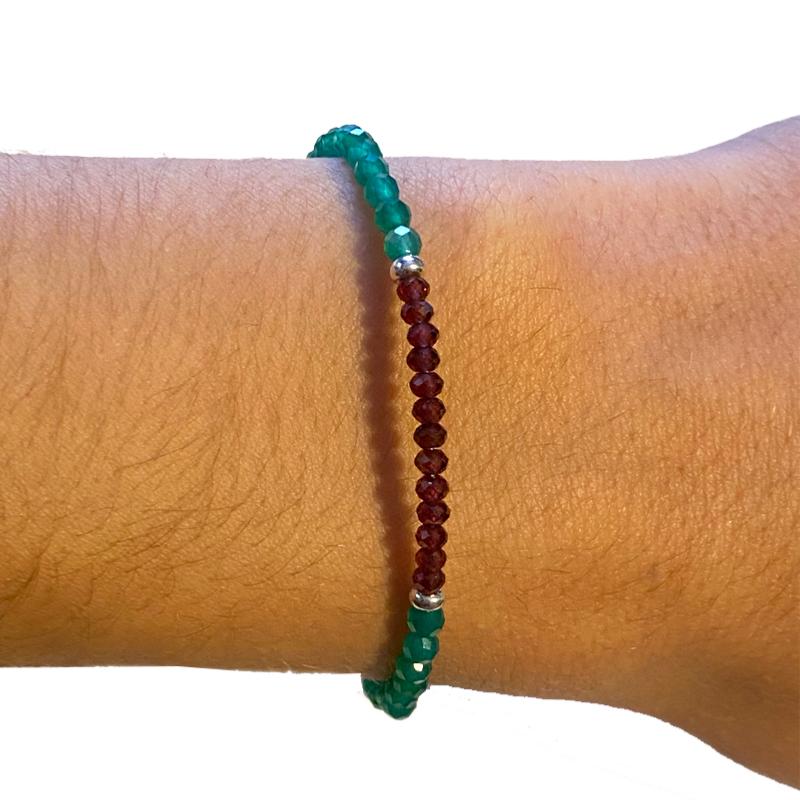 Bracelet agate teintée verte grenat perles facettées argent 925Fournisseur:Bracelet agate teintée verte grenat perles facettées argent 925La Boite à Cailloux- Prix normal