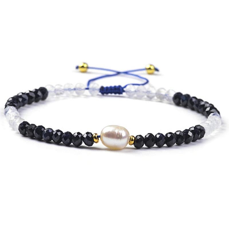 Bracelet réglable coulissant multi spinelle noir, pierre de lune et perle d'eau douce (perles facettées 3-4mm)Fournisseur:Bracelet réglable coulissant multi spinelle noir, pierre de lune et perle d'eau douce (perles facettées 3-4mm)La Boite à Cailloux- Prix normal