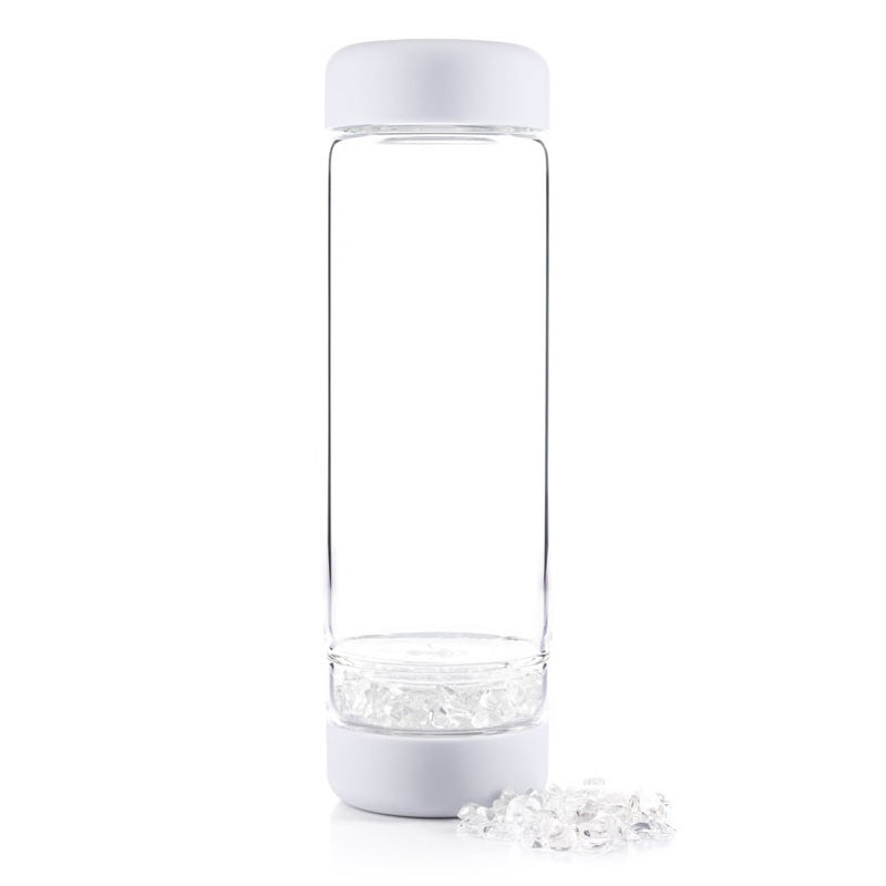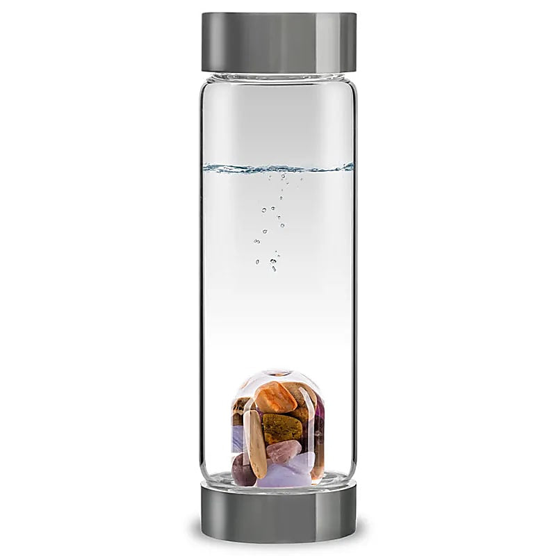 inu! [Hawaiian: "Drink!"] Is an extra-sturdy glass water bottle with a separate chamber, filled to the brim with hand-picked rock crystal.