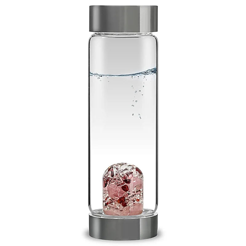 Gemstones are natural energy sources and transform water into living gemstone water according to an old tradition. An engraving with the symbol of the "Flower of Life" contributes to the special drinking experience.