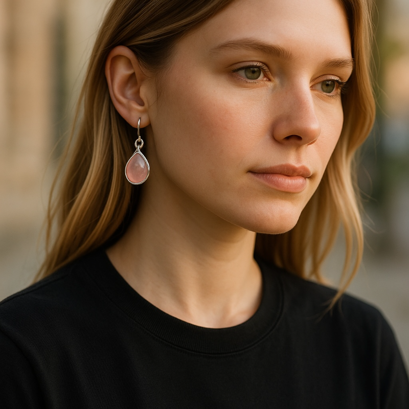 925 silver rose quartz drop earringsVendor:925 silver rose quartz drop earringsLa Boite Ă Cailloux- Regular price