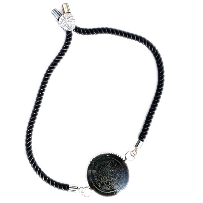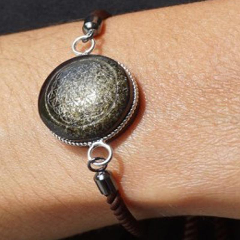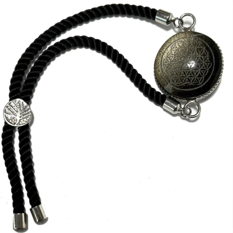 Very beautiful bracelet composed of a 20mm cabochon of golden obsidian engraved with a flower of life. Suitable for all wrists from approximately 16 to 20cm