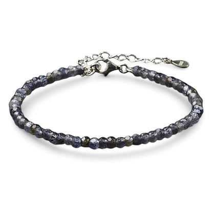 This AA Indian iolite (cordierite) bracelet features faceted beads. Iolite is known for its properties of inner strength and creativity, while the sterling silver symbolizes clarity and wisdom. An elegant accessory to boost your confidence and inspiration.