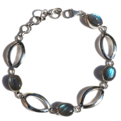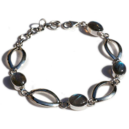 This bracelet combines AA-grade labradorite, mined in Madagascar, with a 925 silver setting, ensuring durability and elegance. The stone, renowned for its shimmering reflections, brings a unique and sophisticated dimension to this jewel. Designed for connoisseurs, this bracelet combines aesthetics and authenticity, perfect for enhancing any outfit with discretion and refinement.