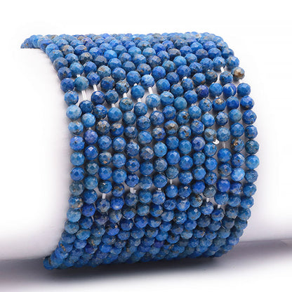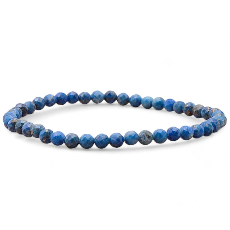 Elastic bracelet made of 3-4mm faceted lapis lazuli beads.