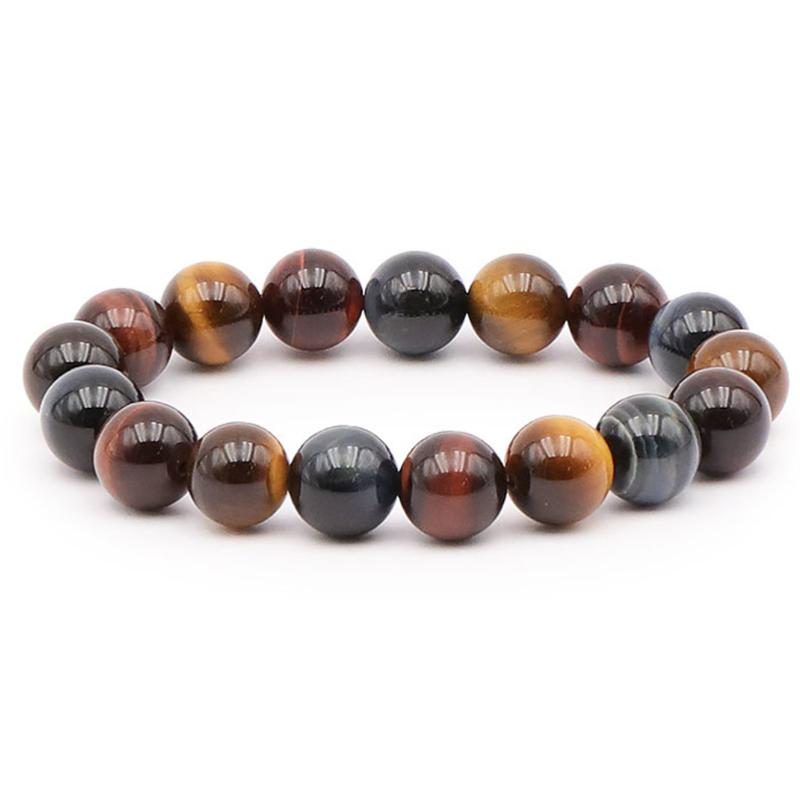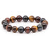 Very beautiful elastic bracelet made up of 15 12mm hawk's eye, tiger's eye and bull's eye beads