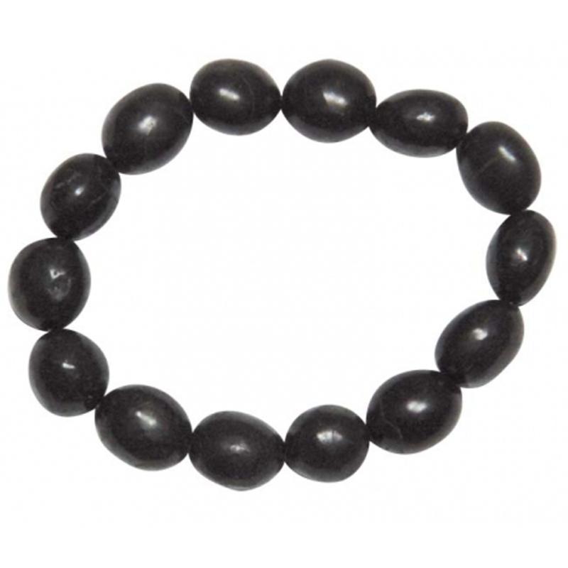 Elastic bracelet made of tumbled shungite stones of approximately 10mm x 12mm.