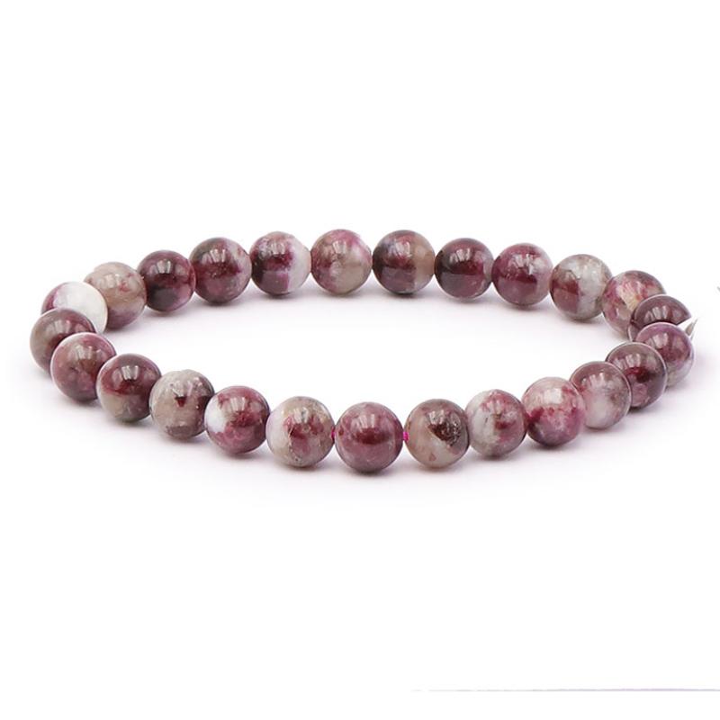 Very beautiful elastic bracelet composed of 7-8mm pink tourmaline beads on quartz.