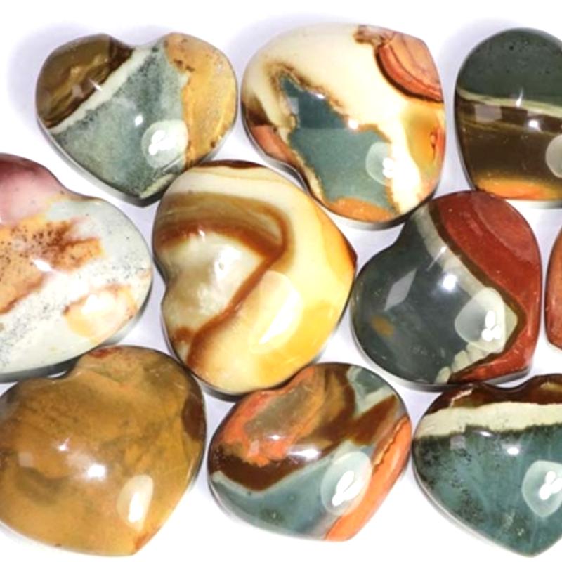 This polychrome jasper is a rare and unique mineral from Madagascar. Measuring 25-35mm, this heart brings protective and healing energy.