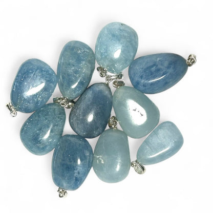 Aquamarine tumbled stone of approximately 18-25mm with 925 silver loop.