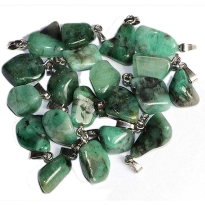 Tumbled emerald stone approximately 10-20mm, pierced by a 925 silver bail