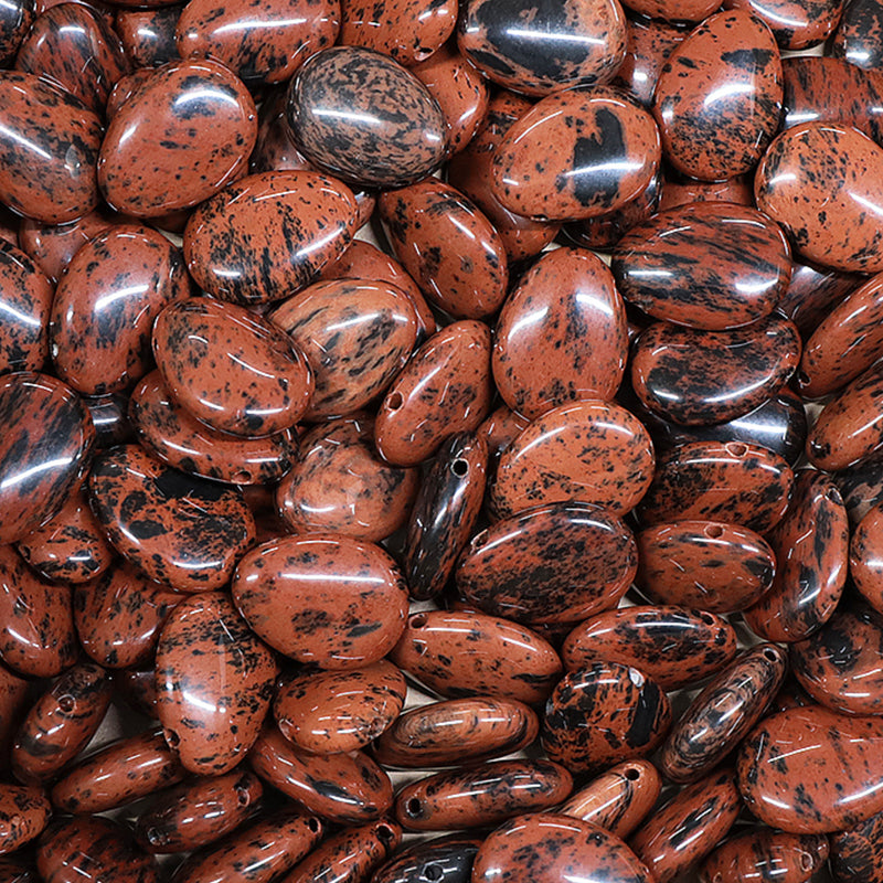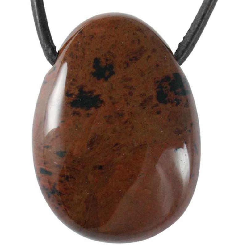 Mahogany obsidian with holes, approximately 30mm x 22mm, delivered with its 1mm waxed cotton cord.