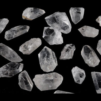 Small raw rock crystal point from Brazil, approximately 15-25mm long (may vary slightly from stone to stone).