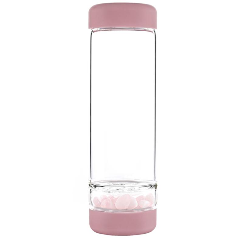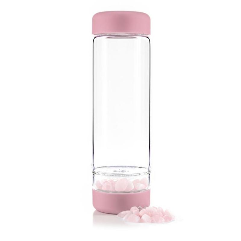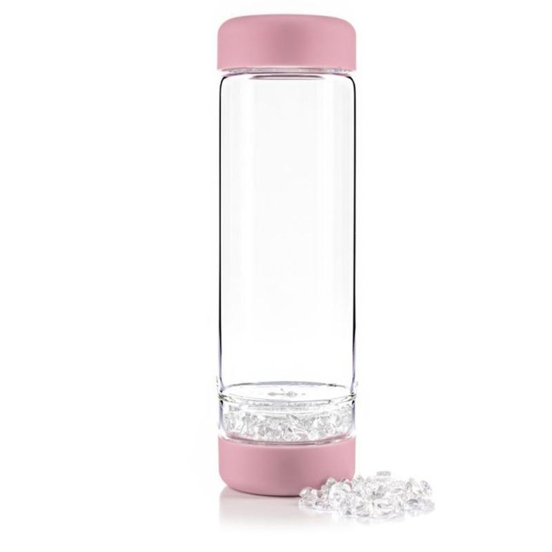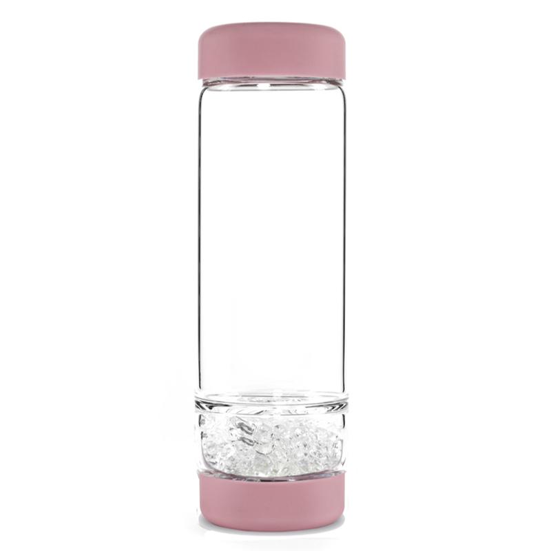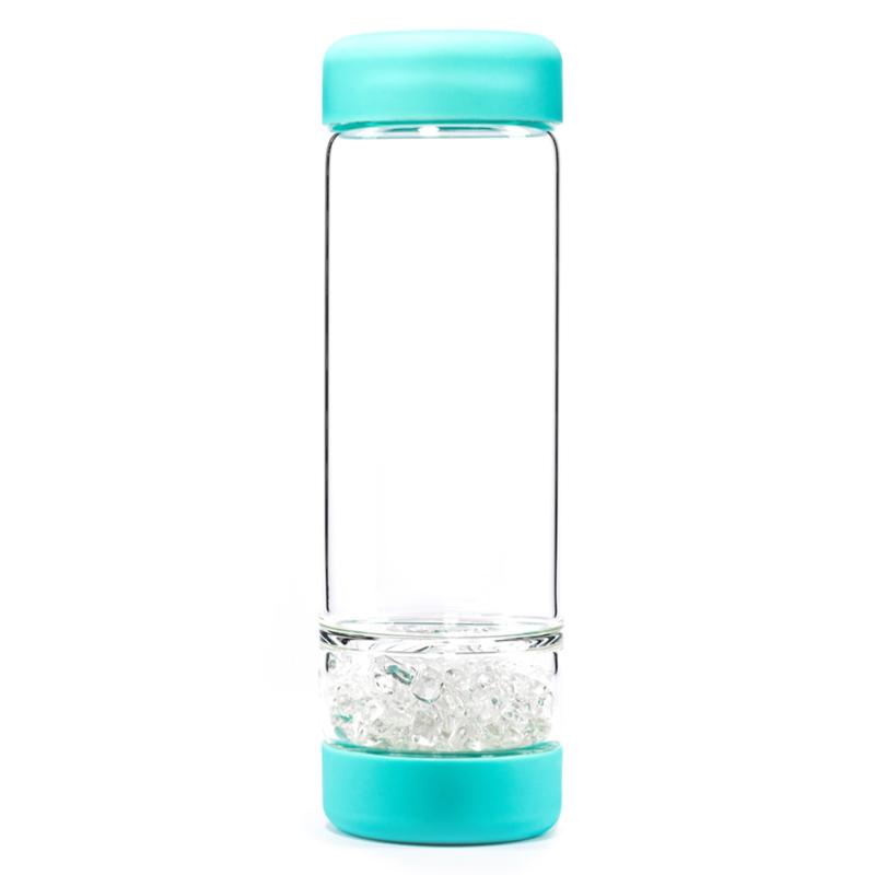 inú! [Hawaiano: "¡Bebe!"] Es una botella de agua de vidrio extra resistente con una cámara separada, llena hasta el borde con cristal de roca cuidadosamente seleccionado.