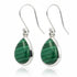 Preciosos pendientes de plata 925 compuestos por un cabujón de malaquita de 10 mm x 7 mm.