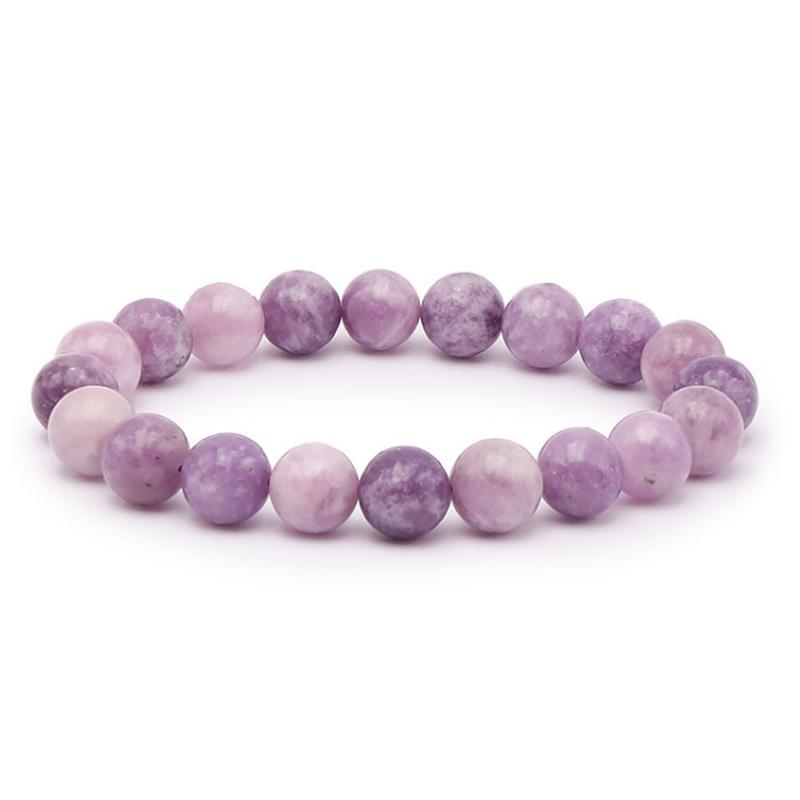 Pulsera elástica de cuentas de lepidolita de 10 mm.