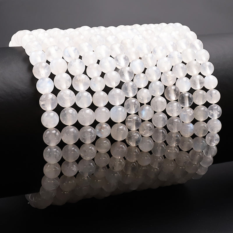 Pulsera elástica elaborada con bolas de piedra lunar arcoiris de aproximadamente 5-6mm.
