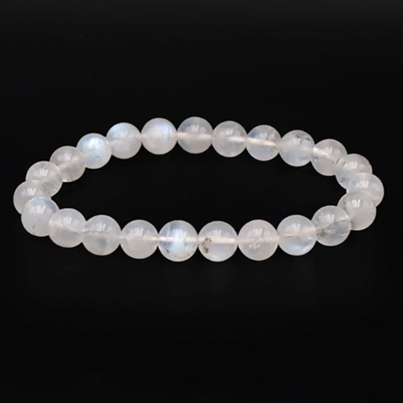 Pulsera elástica formada por bolas de piedra lunar arcoiris (peristerita) de aproximadamente 7-8mm.