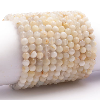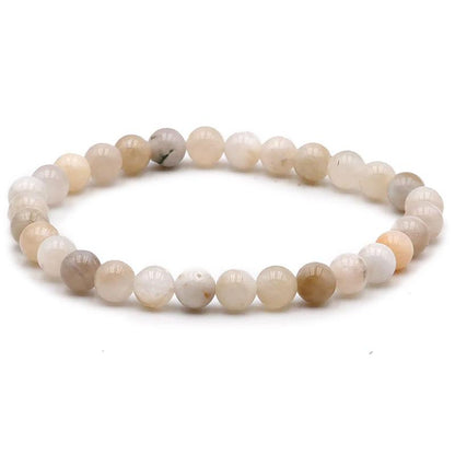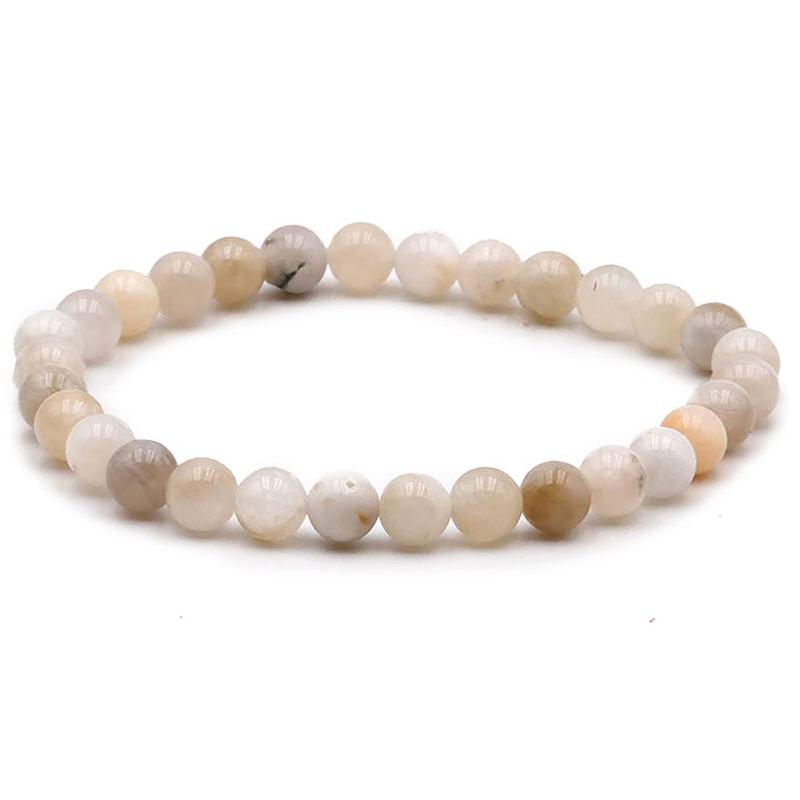 Pulsera elástica realizada con bolas de piedra lunar beige de 5-6mm.