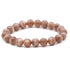 Pulsera elástica compuesta por bolas de piedra luna de 9-10 mm de color marrón anaranjado.