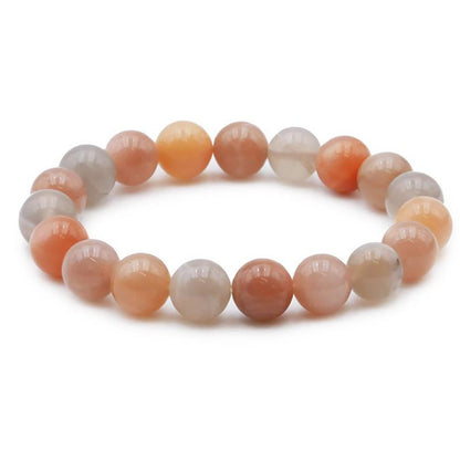 Muy bonita pulsera elastica hecha con bolas de aproximadamente 10m de piedra luna adularia de diferentes colores