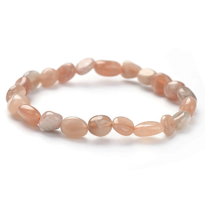 Pulsera realizada con mini piedras laminadas de piedra luna adularia de color naranja-rosa de aproximadamente 5-7mm.