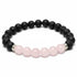 Pulsera compuesta por 17 bolas de piedra de lava y 6 bolas de cuarzo rosa.