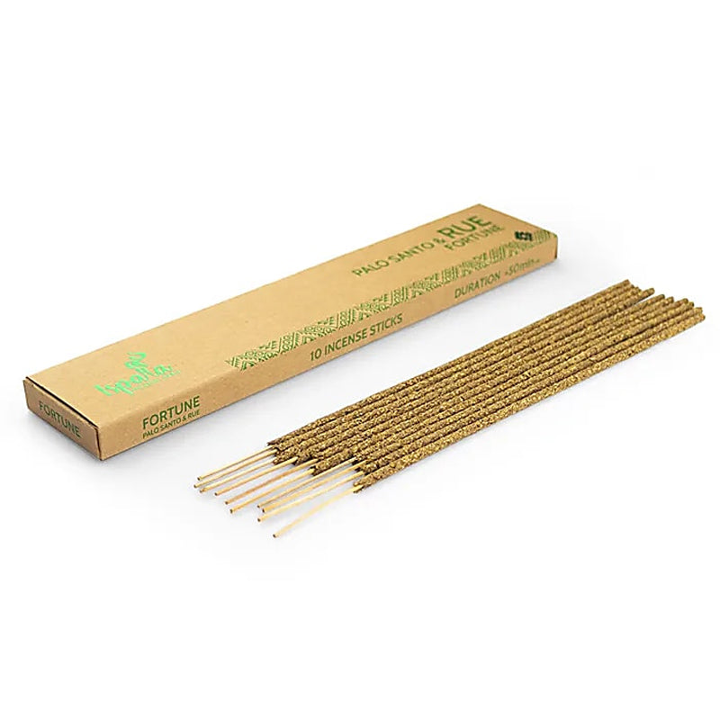 Caja de 10 varitas de incienso natural PALO SANTO (Perú) + RUE.
