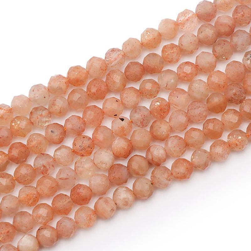 Tira de cuentas facetadas de piedra solar india de 3 a 4 mm