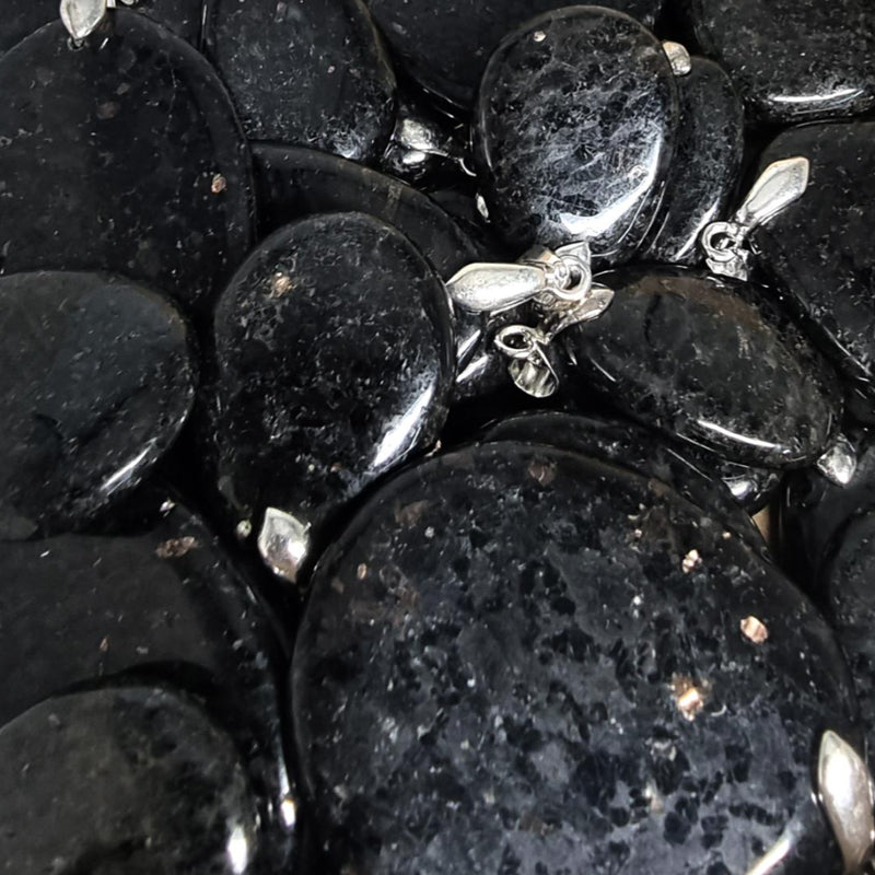 La coppernita, procedente principalmente de la India, está incrustada con escamas cuadradas de cobre. La coppernita, también llamada copperlita, comparte algunas similitudes con la nuummita, ofreciendo vibraciones y propiedades similares, pero es más blanda.