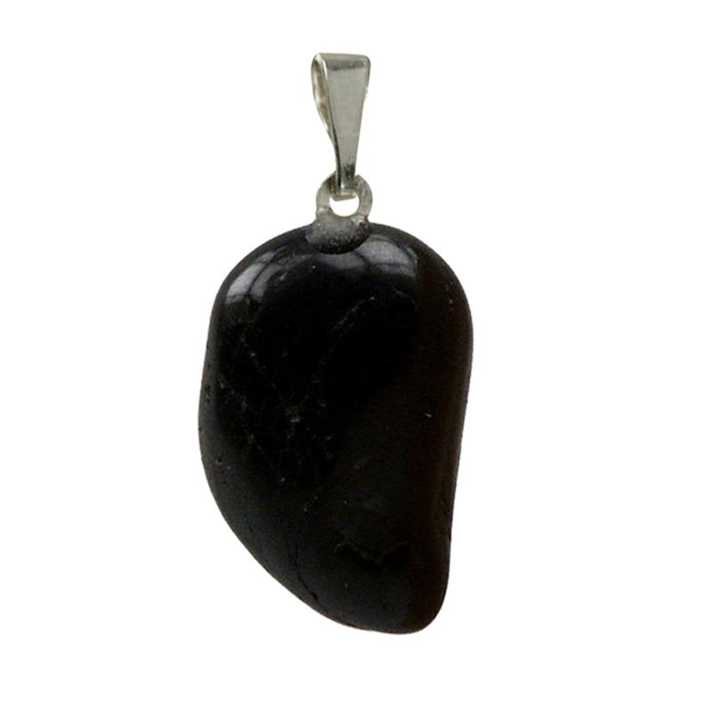 Colgante de turmalina negra Brasil con piedra enrollada anilla de plata 925