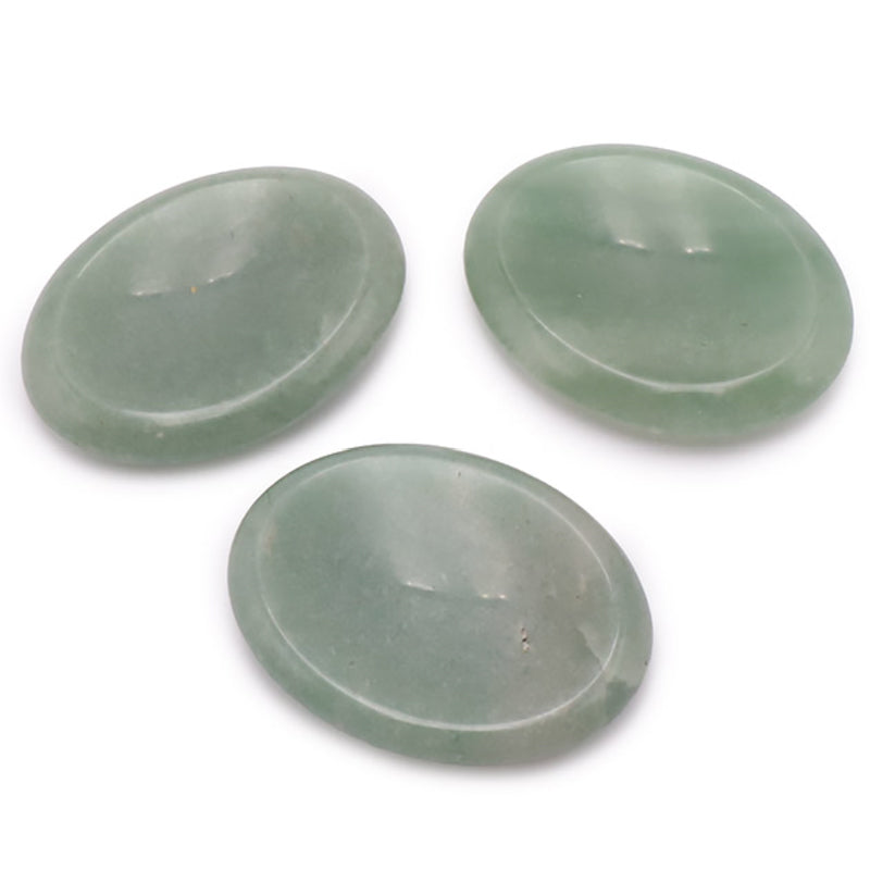 Piedra de pulgar de aventurina verde de aproximadamente 40 x 30 mm.