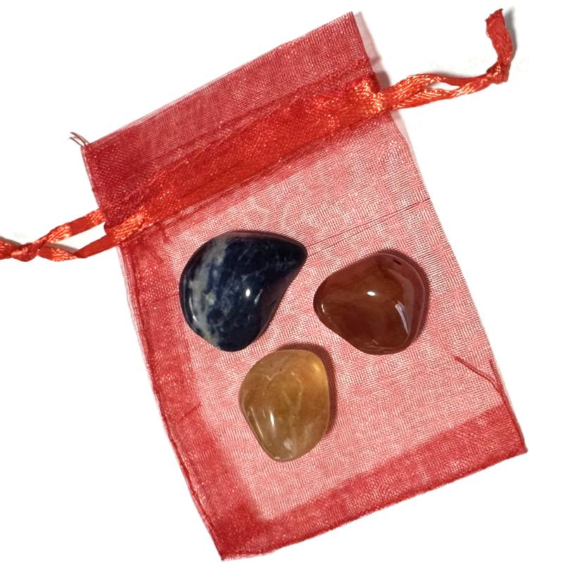 Bolsa de organza que contiene 3 piedras rodadas (15-25mm / Calidad A).