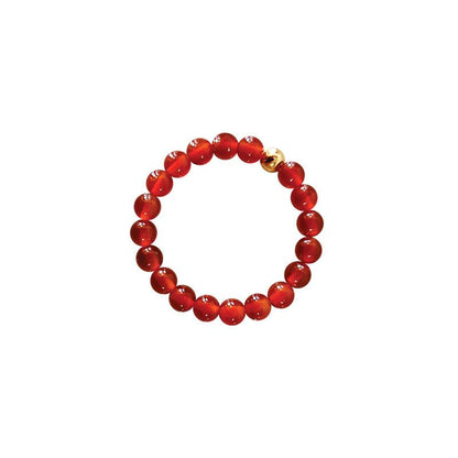 Bague composé de boules de cornaline chauffée de 3mm et d'une perle dorée montées sur un fil élastique.