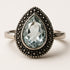 Très belle bague en argent 925 composée d'un cabochon de topaze bleue facettée de 8mm x 6mm.