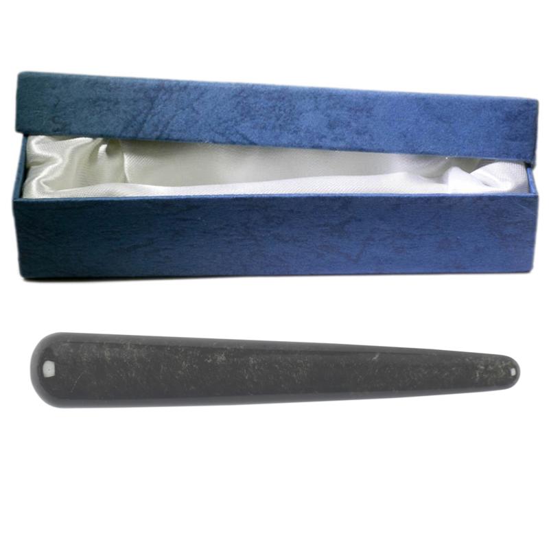 Pointe de massage d'obsidienne argentée d'environ 10cm livré avec sa boite de rangement