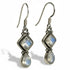Très belles boucles d'oreilles en argent 925 composées de 2 cabochons de pierre de lune arc en ciel (péristérite): 1 de 5mm et 1 de 8mm x 5mm.