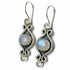 Très belles boucles d'oreilles en argent 925 composées de 3 cabochons de pierre de lune arc en ciel (péristérite): 2 de 4mm et 1 de 10mm x 8mm.