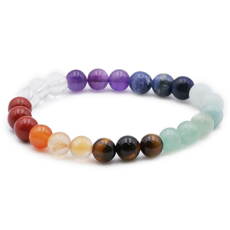 Très beau bracelet composé de boules de 7-8mm représentant les 7 chakras: