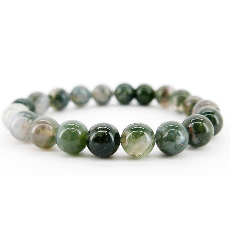 Très beau bracelet composé de boules d'agate mousse de 10mm.
