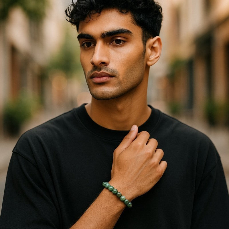 Ce bracelet pour homme est composé de perles d'agate mousse naturelles du Brésil de 7-8mm.