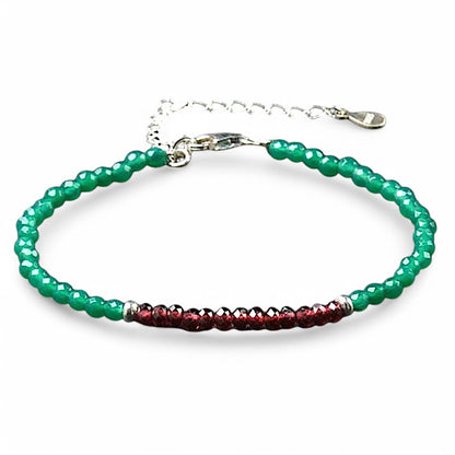 Bracelet agate teintée verte grenat perles facettées argent 925