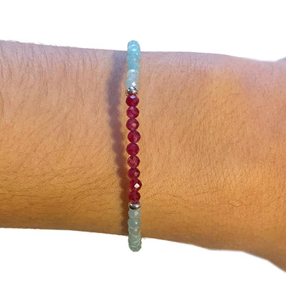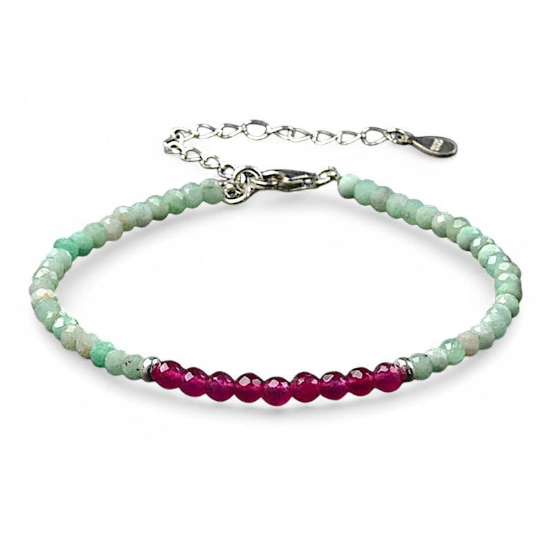 Bracelet amazonite grenat perles facettées argent 925