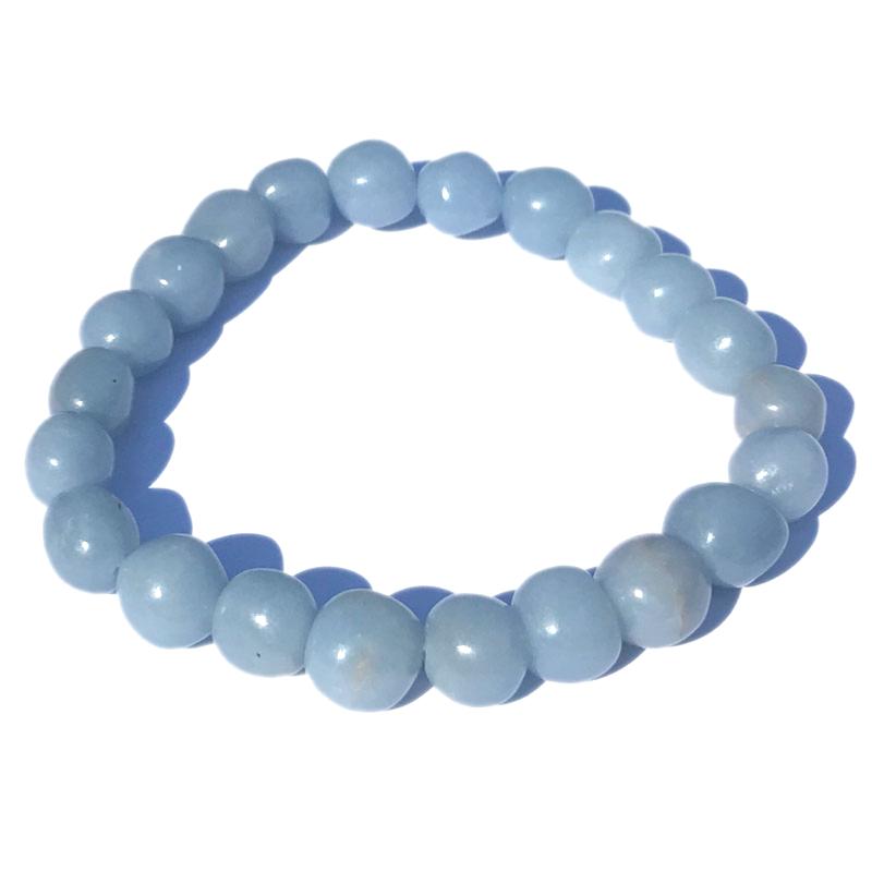 Bracelet composé de pierres roulées d'angélite d'environ 7-8mm.
