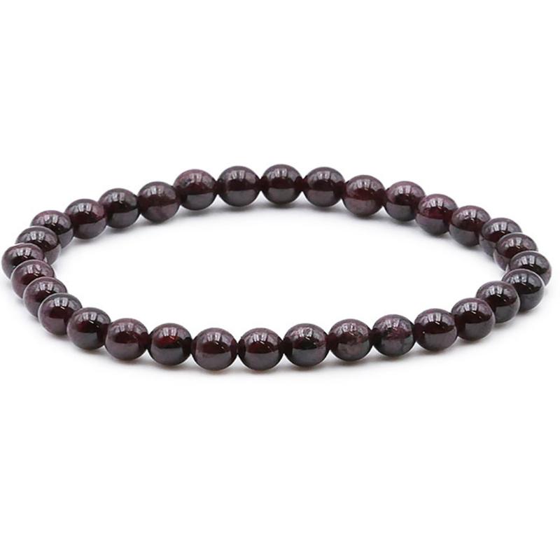 Bracelet élastique composé de boules de grenat d'environ 5-6mm.
