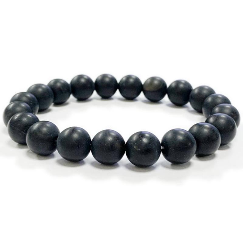 Très beau bracelet élastique composé de boules de 10mm d’onyx dépoli.